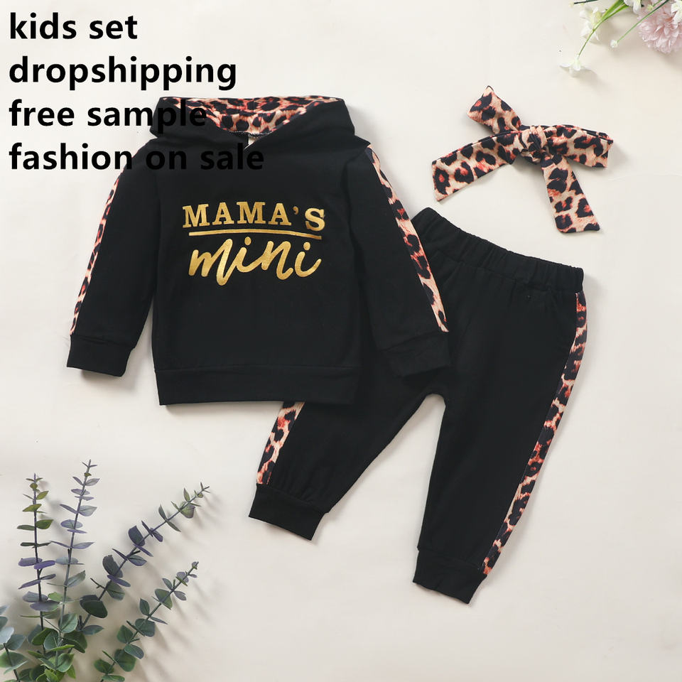 เสื้อสเวตเตอร์ลายเสือดาวสำหรับเด็กผู้หญิงใส่ฤดูใบไม้ร่วงฤดูหนาวเสื้อสเวตเชิ้ตลายเสือดาวสีชมพูชุดเสื้อผ้าเด็กวัยหัดเดินพร้อมที่คาดผม