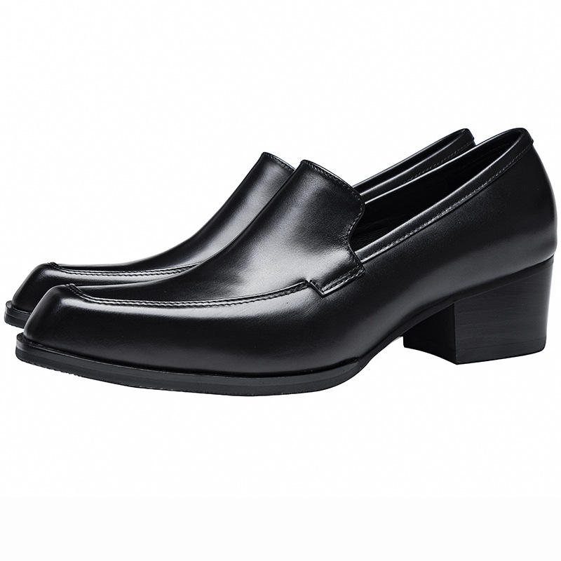 Dropshipping รองเท้าหนังแท้ส้นเหลี่ยมสำหรับผู้ชาย, รองเท้าเพิ่มความสูง5ซม. รองเท้าผู้ชายสีน้ำตาลดำอินเทรนด์