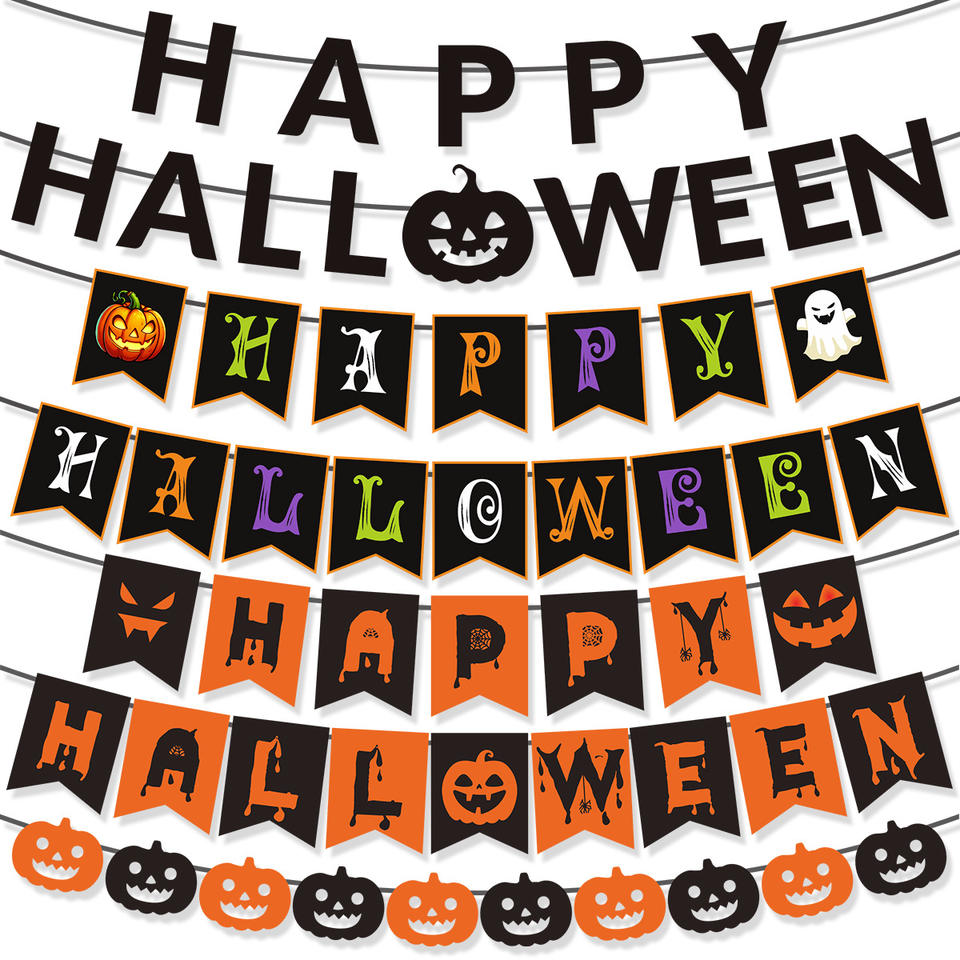 ดรอปชิปปิ้ง ช็อปปี้ 2025 ของตกแต่งปาร์ตี้ฮาโลวีน - แบนเนอร์ฟักทองผีสุดน่ารัก สุขสันต์วันฮาโลวีน