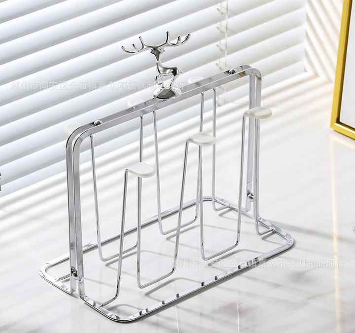 งานเหล็กรูปกวางพร้อมชั้นวางถ้วยเคลือบถาดเก็บของใช้ในครัวเรือนถ้วยแก้วห้องนั่งเล่น