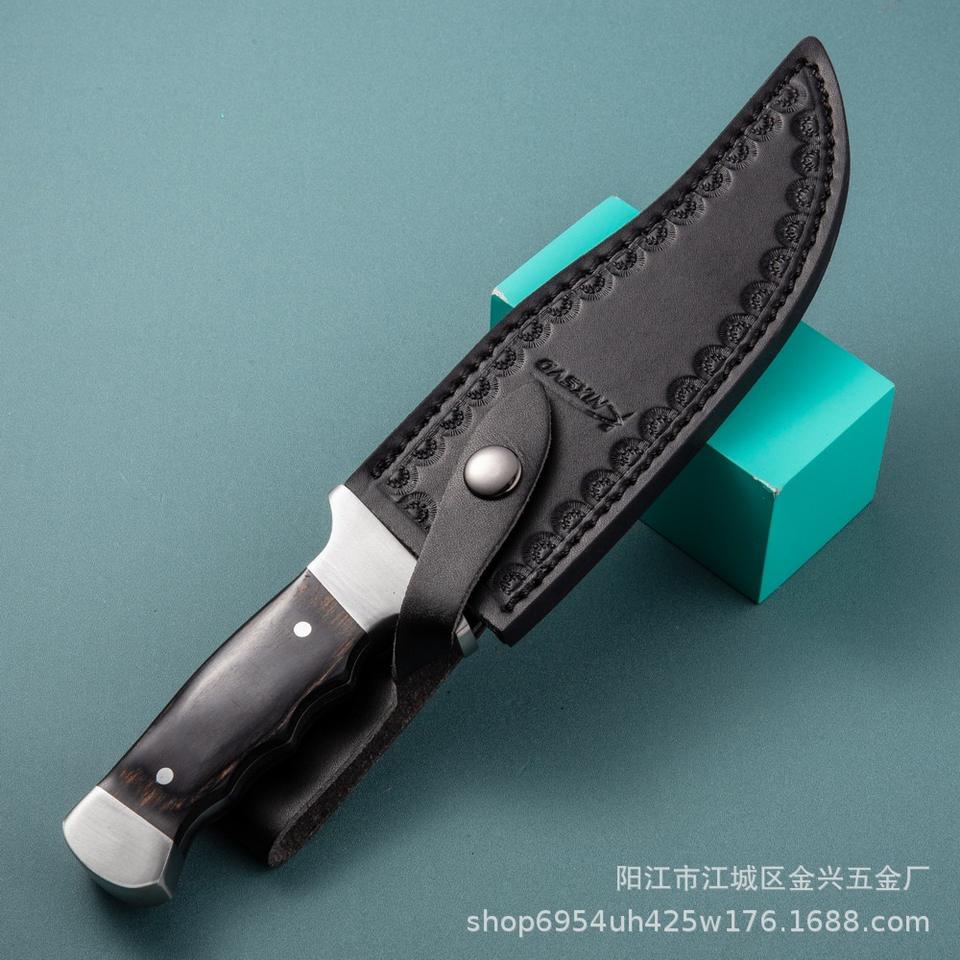 มีดดรอปชิปปิ้ง Shopify แบบ Full Tang ใบมีดคงที่ หนา 5 มม. ทำจากเหล็กกล้าไร้สนิม มีดเดินป่าเอาตัวรอดสำหรับการตั้งแคมป์ ด้ามไม้แท้นำเข้า