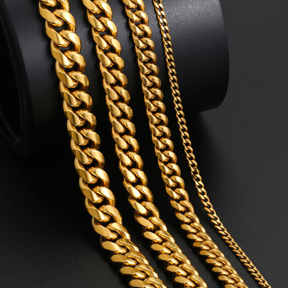 สร้อยคอแบบ Cuban Chain สไตล์ฮิปฮอป ชุบไทเทเนียม พร้อมตัวล็อคแบบ Lobster Clasp ประดับเพชรซิคอน สำหรับทุกเพศ ขายแบบดรอปชิปบน Shopify