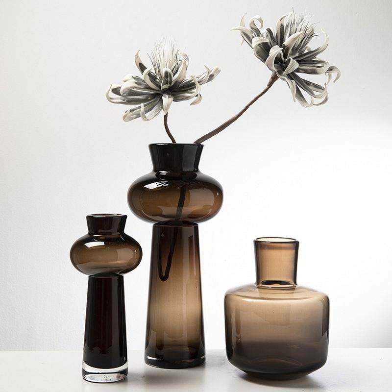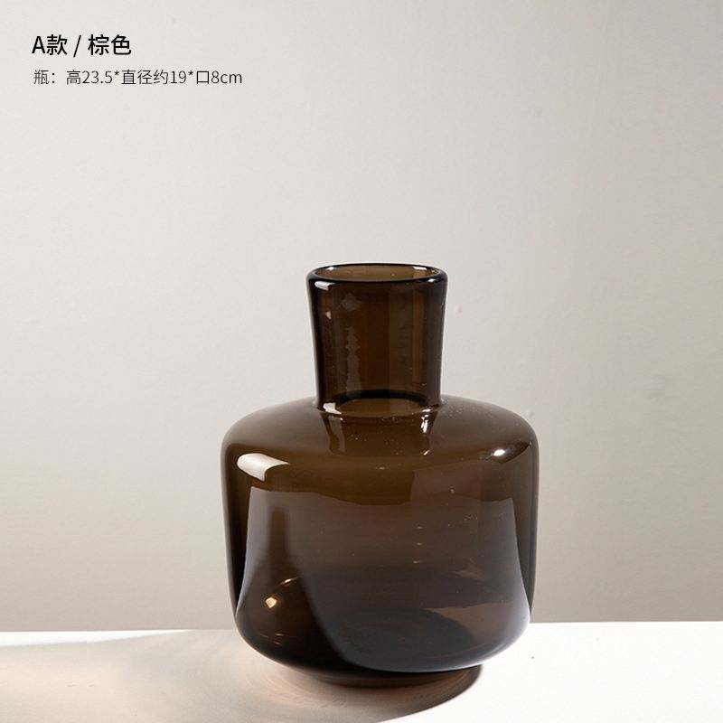 Dropshipping shopify แจกันแก้วสีน้ำตาลหรูหราสไตล์นอร์ดิกงานหนักตกแต่งบ้านห้องรับแขกการจัดดอกไม้การจัดแสดงแบบไฮโดรโปนิก