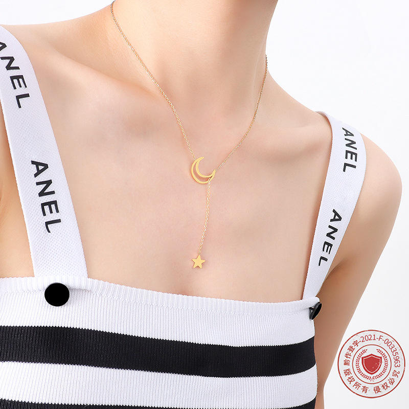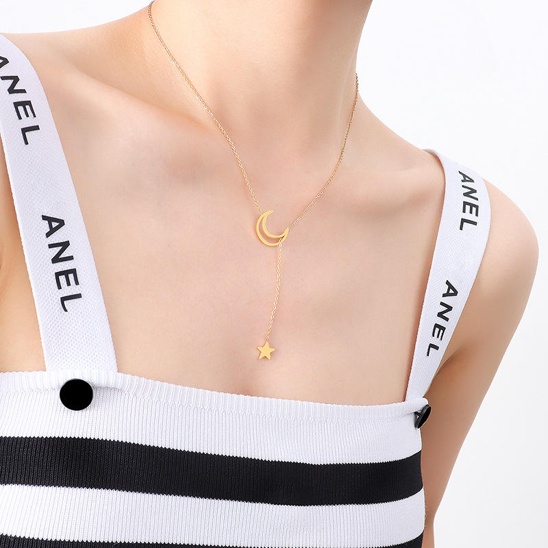 สร้อยคอจี้รูปดาวและพระจันทร์ ดรอปชิปปิ้ง สำหรับ Shopify ทำจากไทเทเนียมสตีล ชุบทอง 18K เครื่องประดับสไตล์เทพธิดา ของขวัญสำหรับเพื่อนสนิท