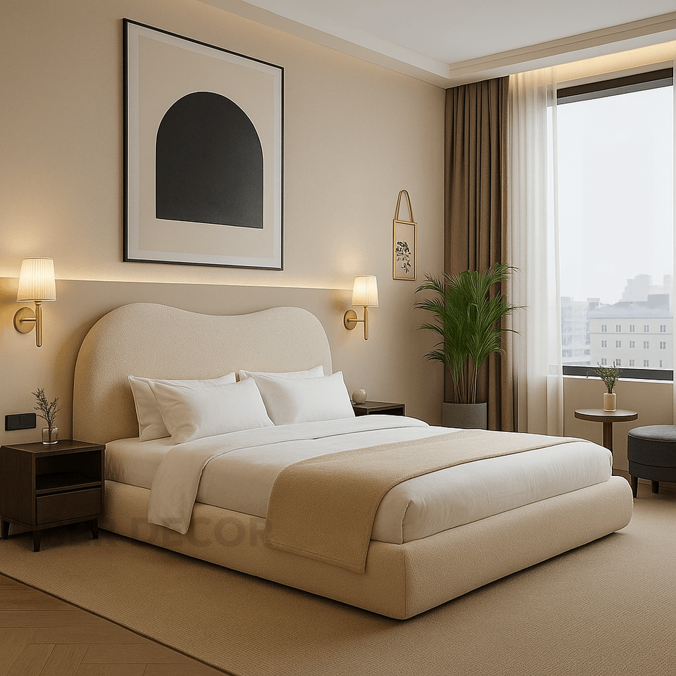 เฟอร์นิเจอร์ห้องนอนจำเป็นสไตล์โมเดิร์นห้องนอนจมน้ำเตียงโค้งขนาดเล็ก Wabi-Sabi