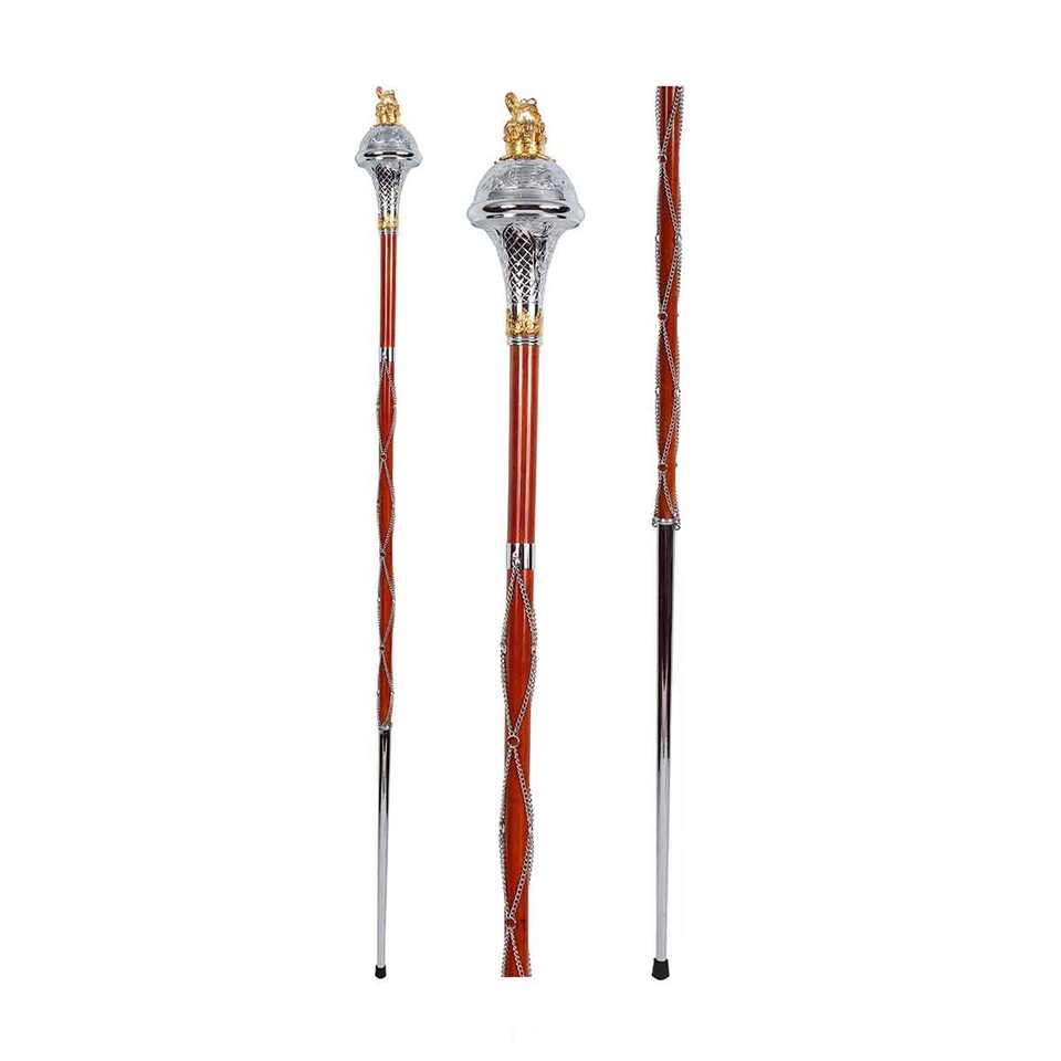กระบองยาวหัวสลักลายสิงโตและมงกุฎชุบทองโครเมียม ขนาด 60 นิ้ว