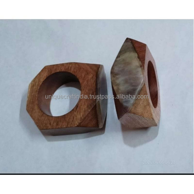 ห่วงรัดผ้าเช็ดปากทำจากไม้รูปทรงกลองมีการตัดเป็นเส้น | ของตกแต่งโต๊ะรับประทานอาหารที่หรูหราและงานต่างๆ