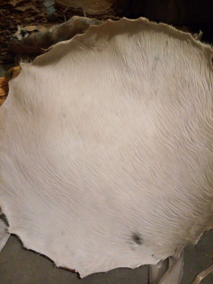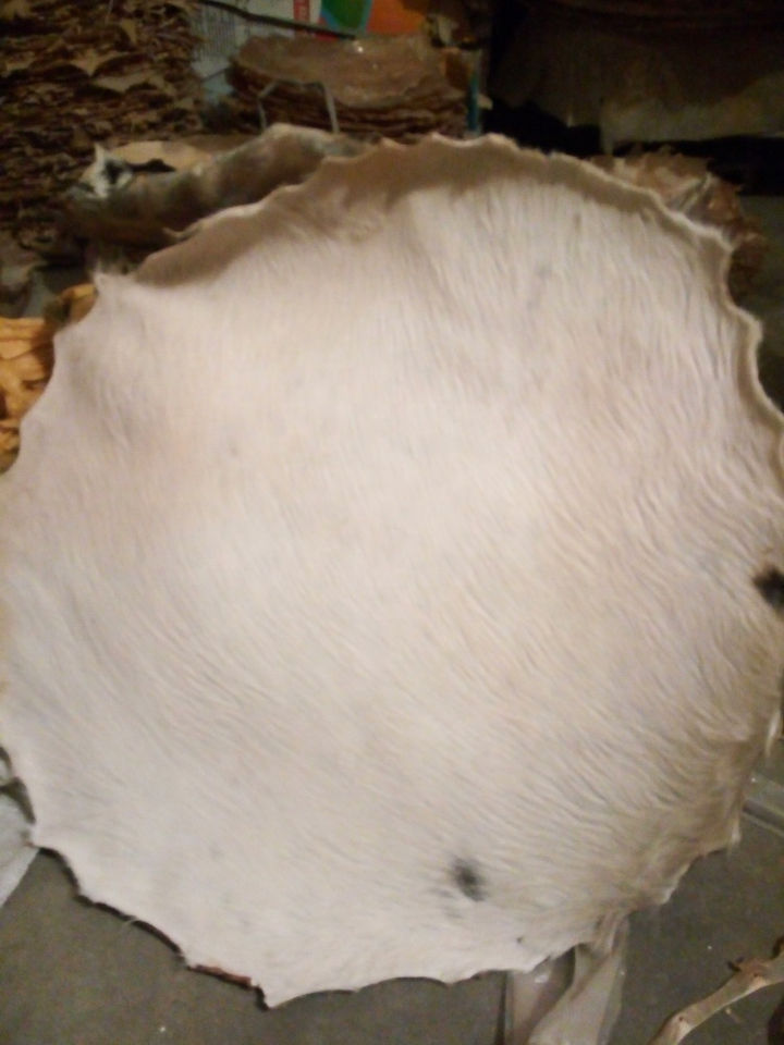 หนังกลองหลากหลายขนาดสำหรับกลองเอวและกลองอื่นๆ หนังกลองทำจากหนังวัวธรรมชาติ