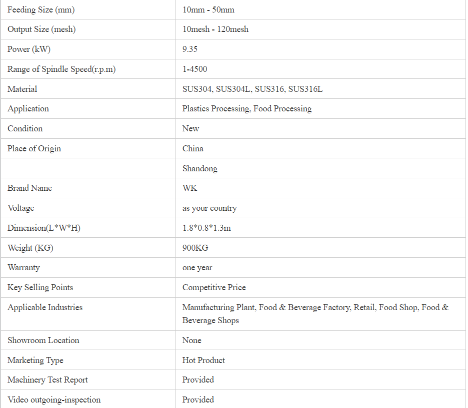 10 - 120 meshเอาท์พุทขนาด (ตาข่าย)