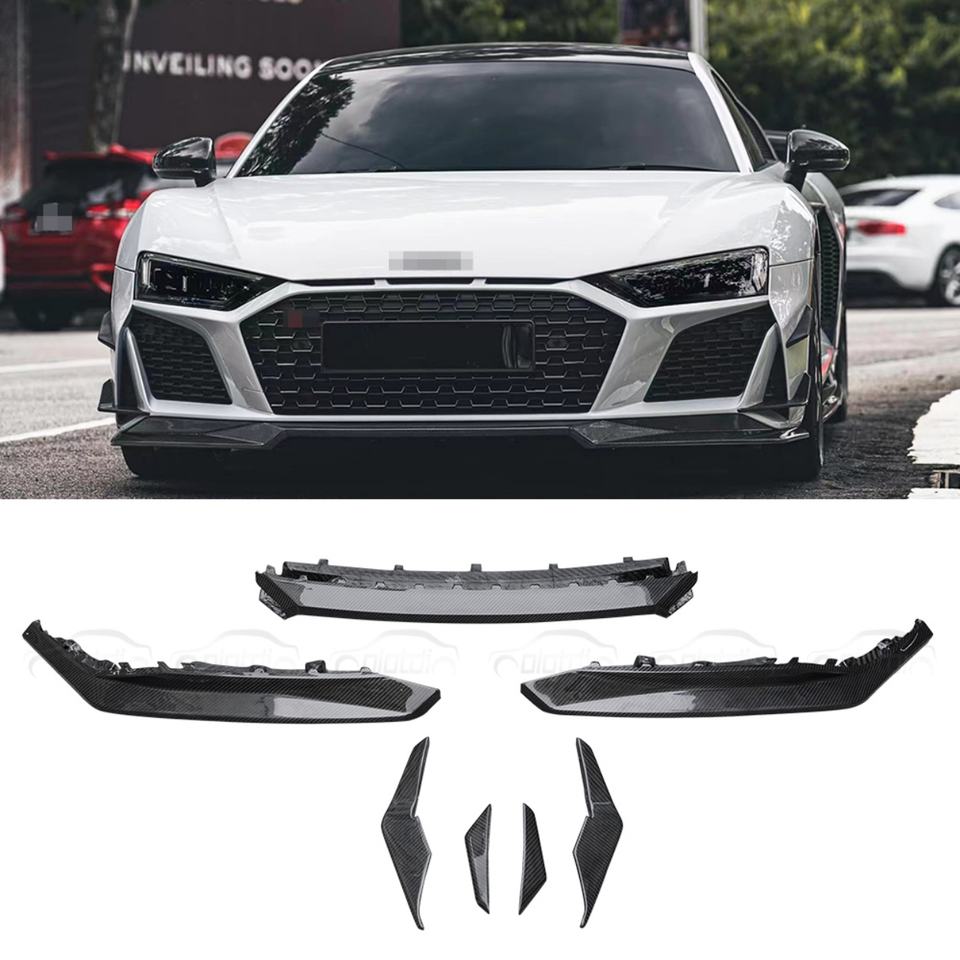 สปอยเลอร์คาร์บอนไฟเบอร์แห้งสำหรับกันชนหน้า ครีบตกแต่ง วิงเล็ต สปลิตเตอร์ คานาร์ด สำหรับตกแต่งรถยนต์ออดี้ R8