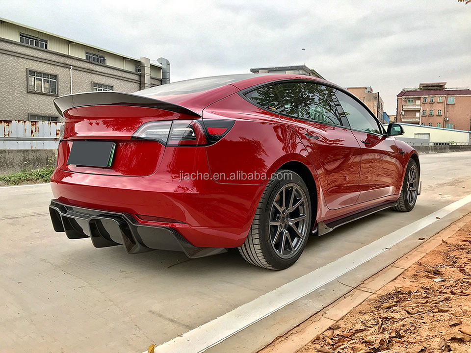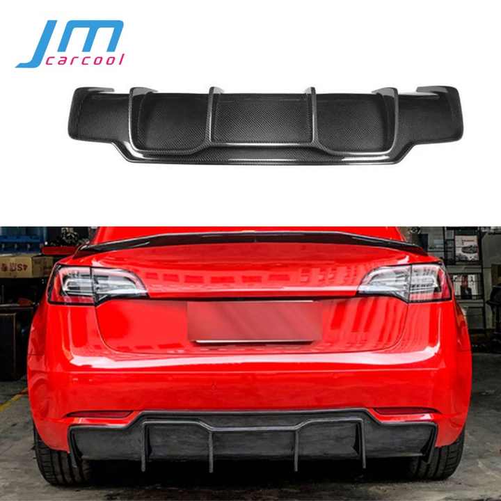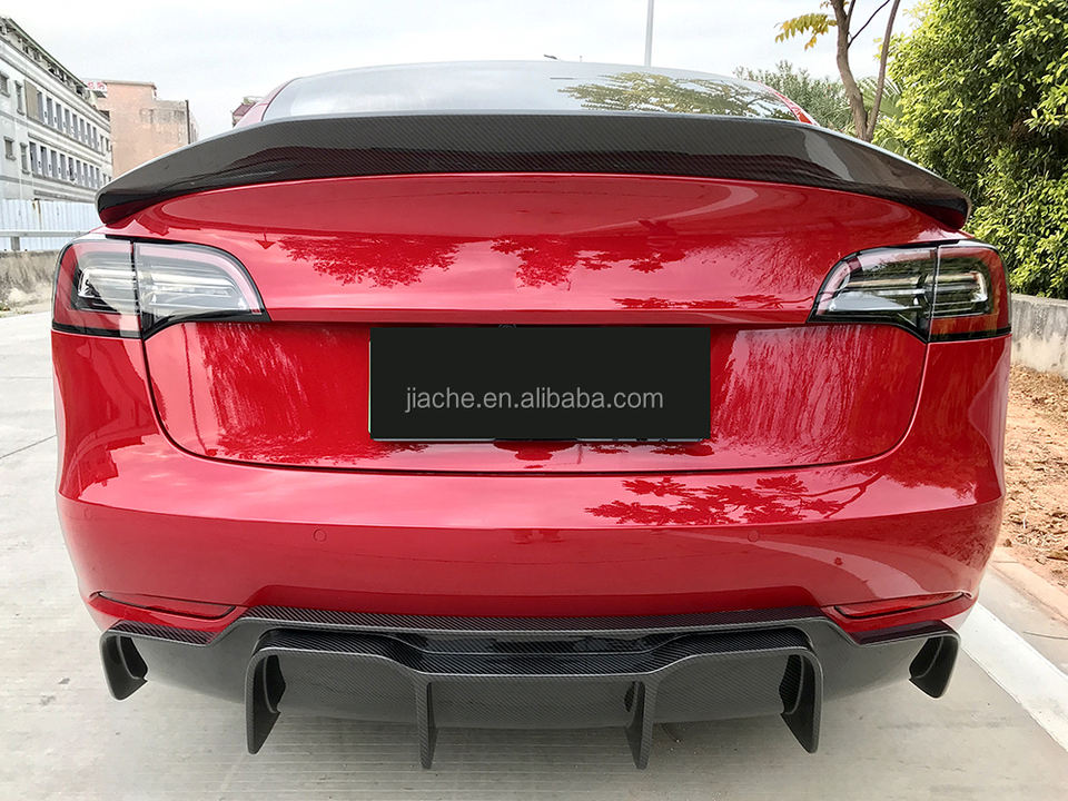 ดิฟฟิวเซอร์สปอยเลอร์กันชนหลังคาร์บอนไฟเบอร์แบบแห้ง สำหรับรถยนต์เทสล่า รุ่น 3 ปี 2017-2020 ชุดแต่งกันชนหลัง ชุดแต่งรถยนต์