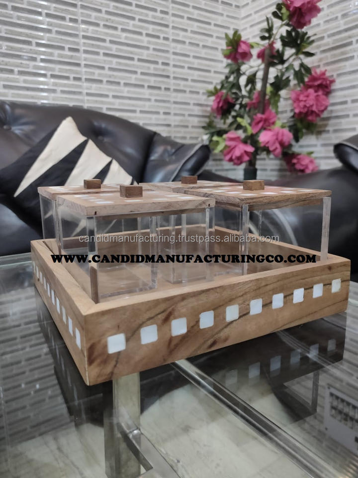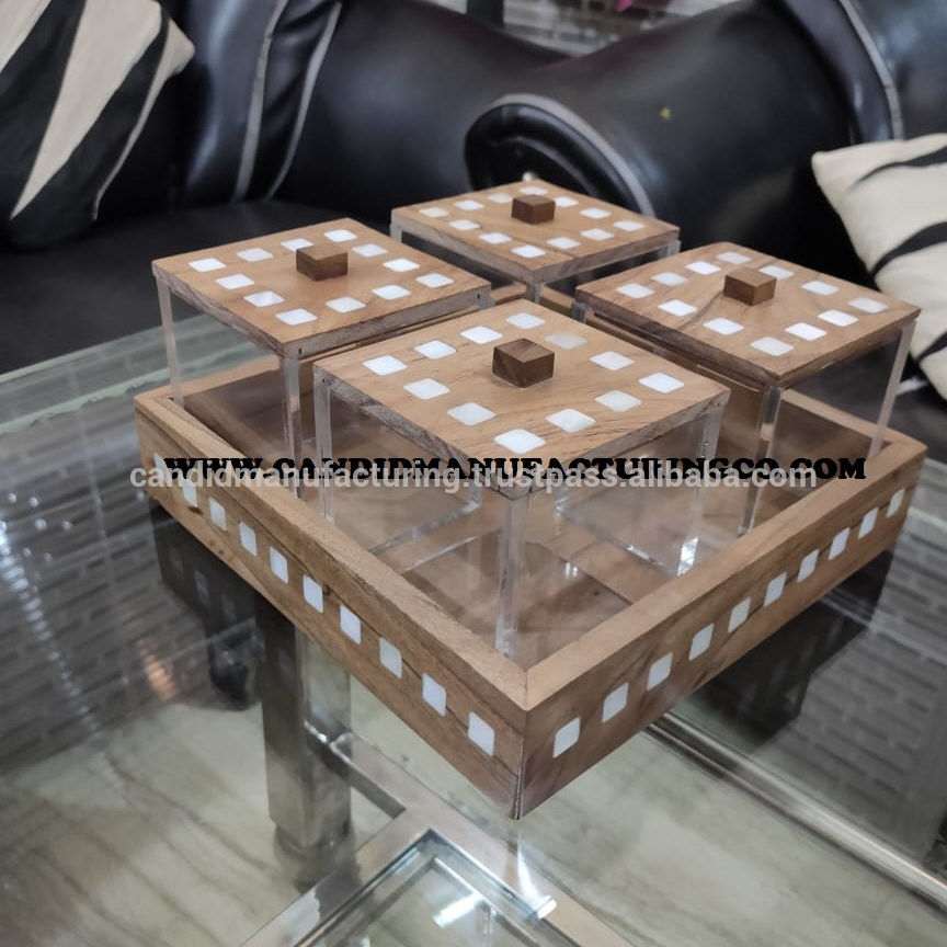 ภาชนะใส่อาหารแห้งถาดไม้ฝังมุกกล่องไม้และอะคริลิกถาดเสิร์ฟช็อคโกแลต