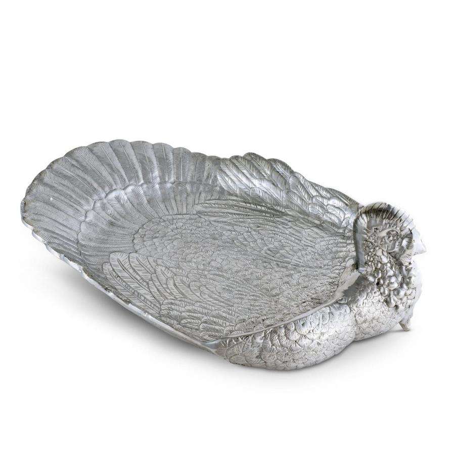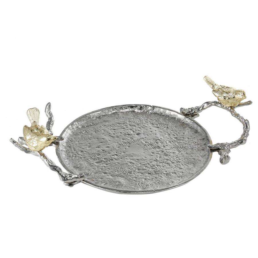 ถาดเสิร์ฟทรงกลมทำจากโลหะอลูมิเนียมโบราณสีบรอนซ์