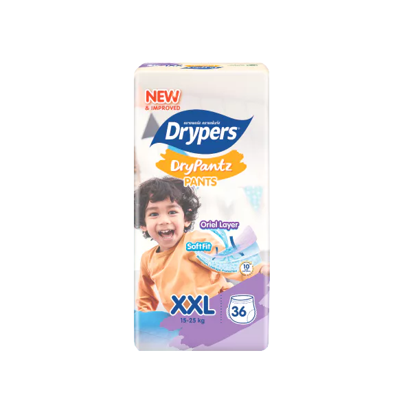 Drypers กางเกง drypantz ดูดซับ XXL36สบายผ้าอ้อมสำหรับเด็กทารกรักษาผิวแห้งได้นานถึง10ชั่วโมง