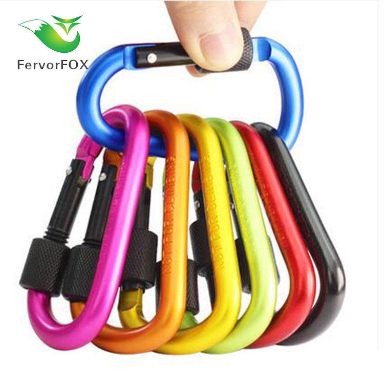 Dsk02 คาราบิเนอร์อะลูมิเนียมชนิด D ขนาด 8 ซม. แบบล็อคได้ อุปกรณ์เดินป่ากลางแจ้ง พวงกุญแจอเนกประสงค์ ตะขอหลากสี