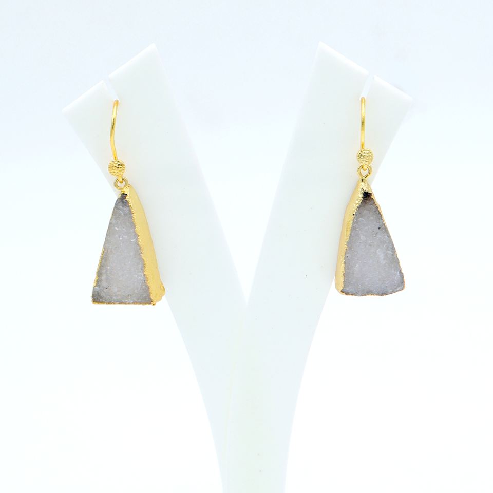 Dua drusy ต่างหูทรงสามเหลี่ยมอินเทรนด์สุดหรูของผู้หญิงทำด้วยมือชุบทอง18K ทองเหลืองโลหะผสมทองแดงเครื่องประดับสำหรับงานแต่งงาน