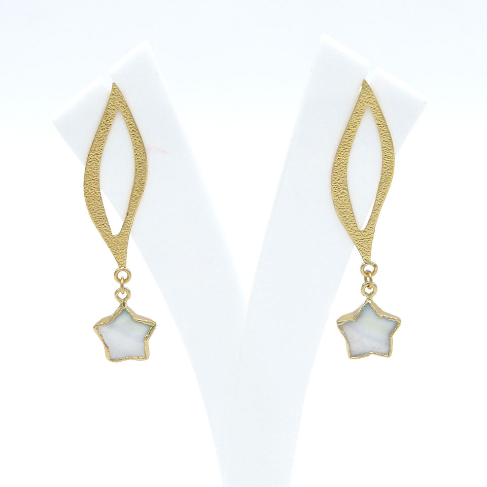 ต่างหูห้อยทรงดาวประดับด้วยลูกปัดอาเกตและทองเหลืองชุบทอง 18K งานแฮนด์เมด เครื่องประดับสำหรับงานแต่งงานสำหรับผู้หญิง