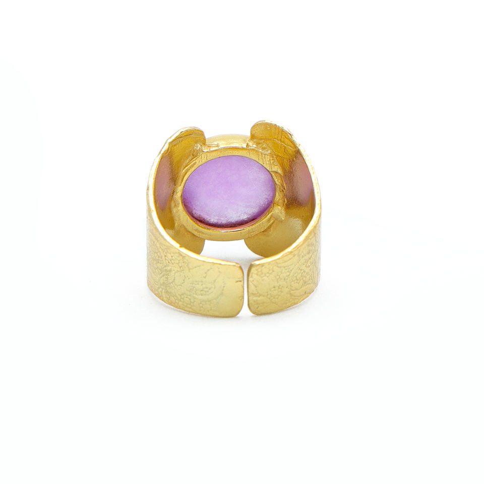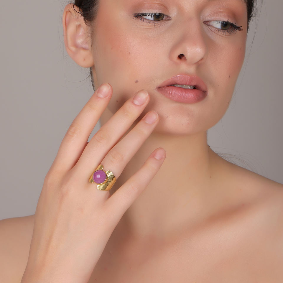 แหวนหยกสีม่วงดูอา ชุบทอง 18K เครื่องประดับอัญมณีทันสมัยสำหรับโอกาสครบรอบแต่งงาน งานเลี้ยง และงานปาร์ตี้ สำหรับทุกเพศ