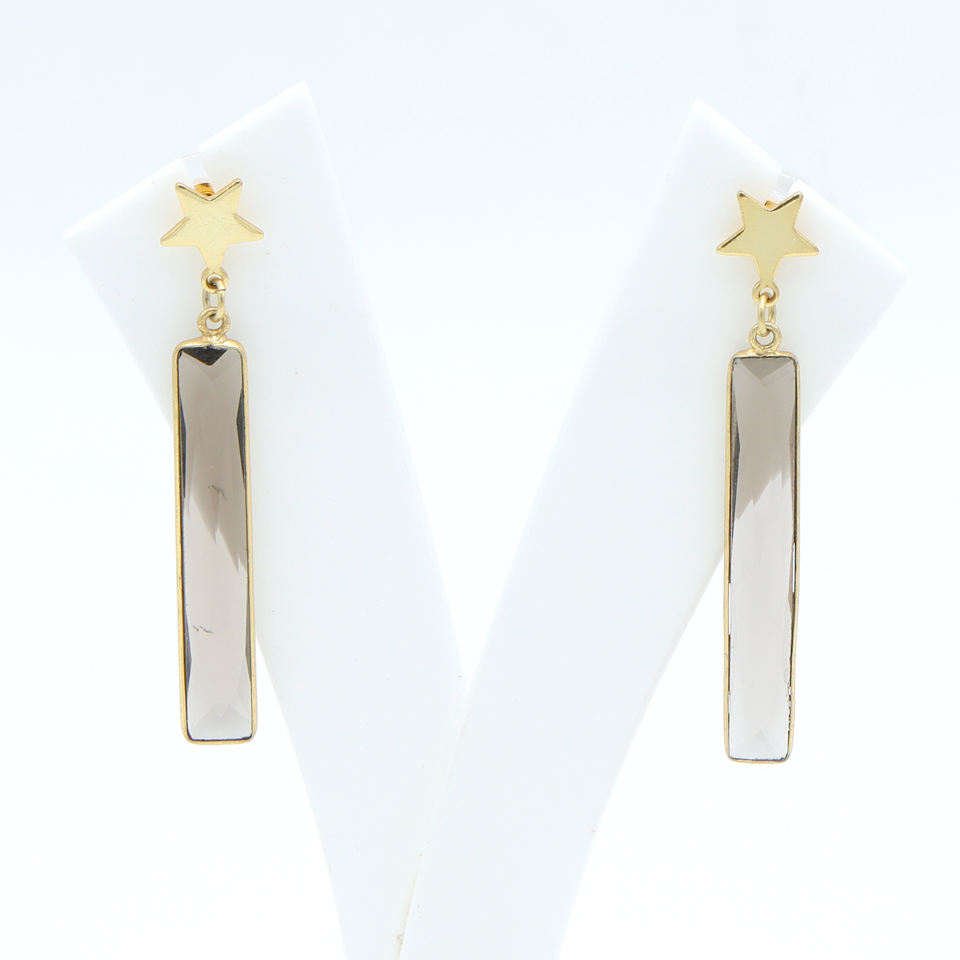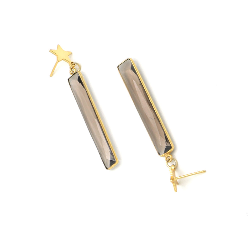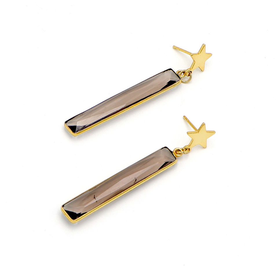ต่างหูทองเหลืองทรงหยดน้ำ DUA ประดับควอตซ์สโมคกี้ ชุบทอง 18K งานแฮนด์เมด เครื่องประดับงานแต่งงานสำหรับผู้หญิง