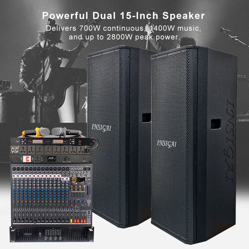 ตู้ลำโพงคู่ขนาด 15 นิ้ว ระบบเสียงสำหรับงานแต่งงาน ลำโพงเบสหนักคู่ขนาด 15 นิ้ว ซับวูฟเฟอร์คู่ ลำโพงระดับมืออาชีพ