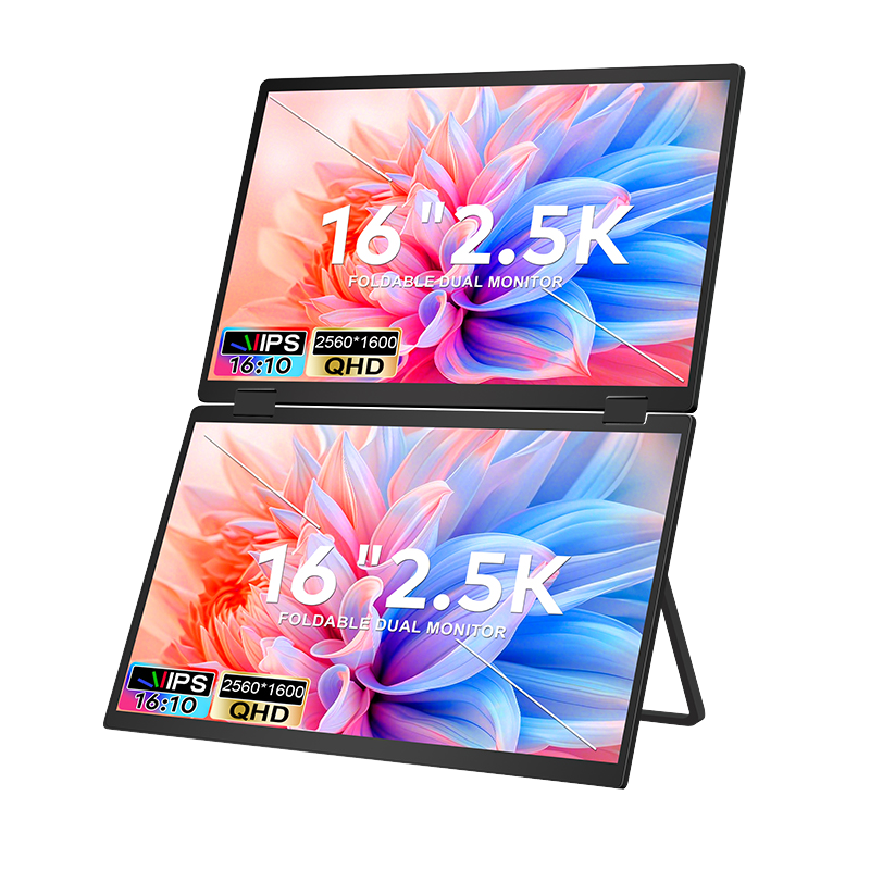 จอภาพเสริมสำหรับแล็ปท็อปเล่นเกมและเทรดหุ้น ขนาด 16 นิ้ว แบบคู่ ความละเอียด QHD 2.5K จอ LCD/LED แบบ IPS จอพกพาพับได้แบบสามจอ
