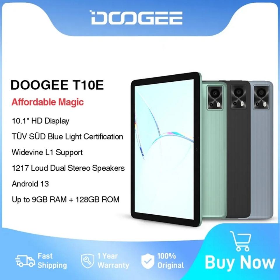 T10E แท็บเล็ตสำหรับธุรกิจ4G Wi-Fi Doogee 4G OCTA Core 5 + 8MP 10.1 "จอแสดงผล FHD 3GB + 128GB Android 10 8000mAh รองรับ L1 widevine