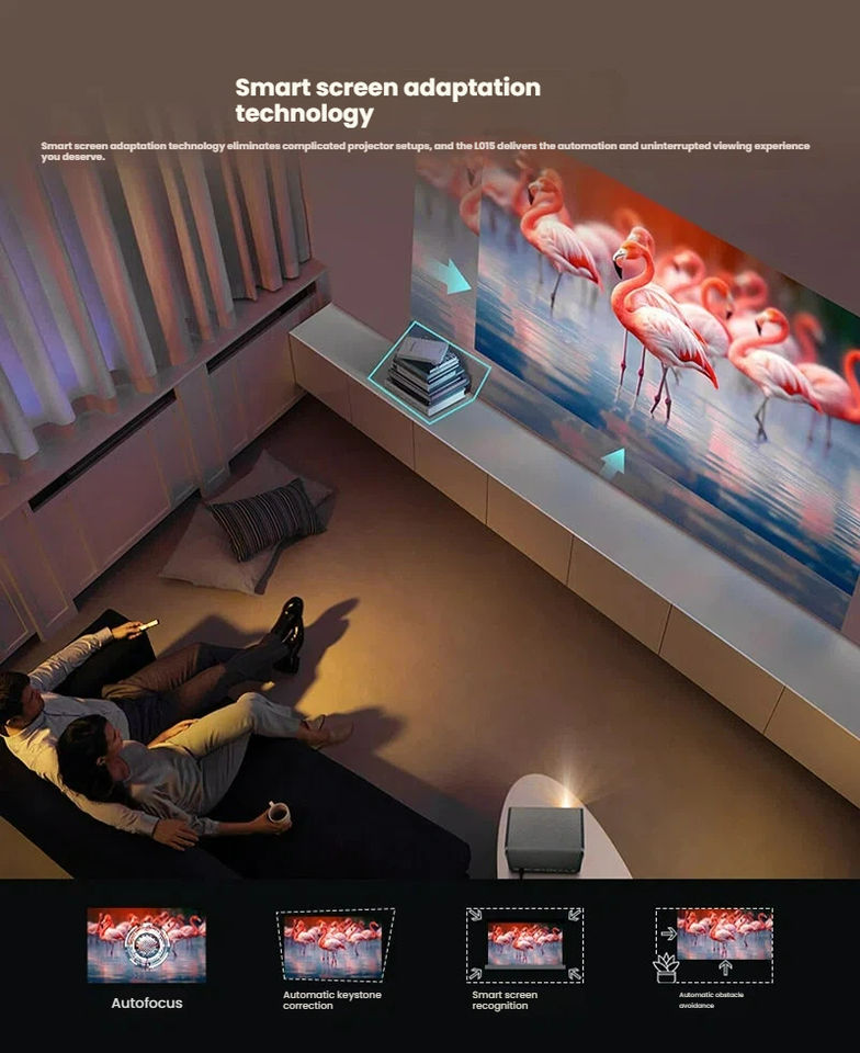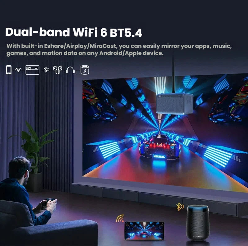 ลำโพง5W แบบคู่แอนดรอยด์4K BT5.4สั้น LED โปรเจ็คเตอร์2G สำหรับ Netflix การสตรีมมิ่งในยูทูป
