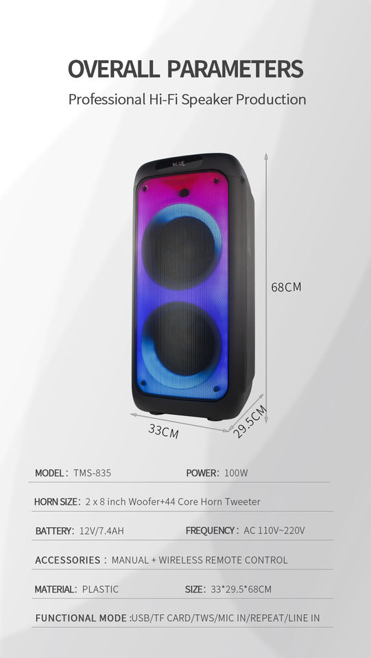วูฟเฟอร์เบสขนาด 8 นิ้วคู่ 80w ลําโพงบลูทูธแบบพกพาสุดขีด Original กล่องลําโพงขนาดใหญ่พร้อมตัวเลือก EQ สําหรับงานปาร์ตี้กลางแจ้ง
