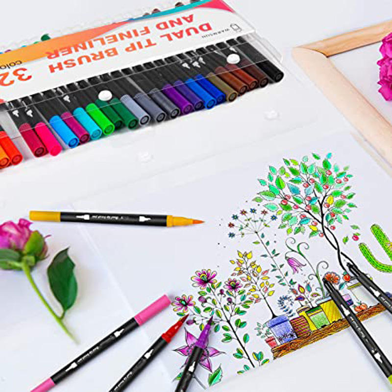 ปากกาหัวพู่กันสองหัว ปากการะบายสี 0.4 มม. หัวแหลม สำหรับผู้ใหญ่ เด็ก ระบายสี สมุดระบายสี เขียน วางแผน งานศิลปะ