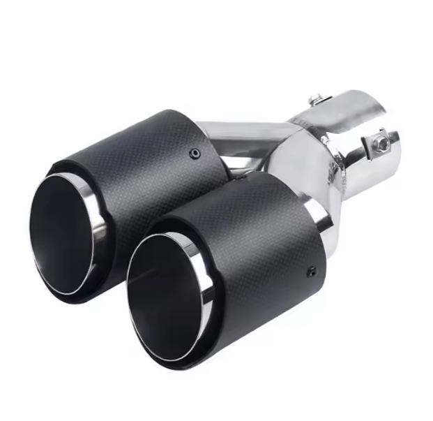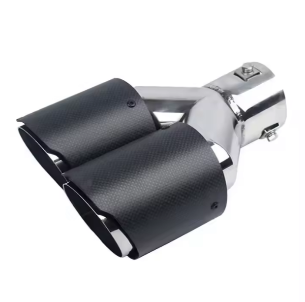 ปลายท่อไอเสียคู่ YUEYANG ทำจากคาร์บอนไฟเบอร์สีเงินและสแตนเลส คุณภาพสูงสำหรับรถยนต์