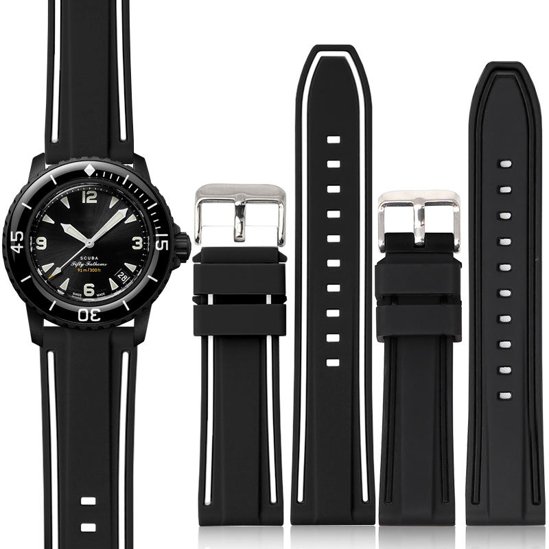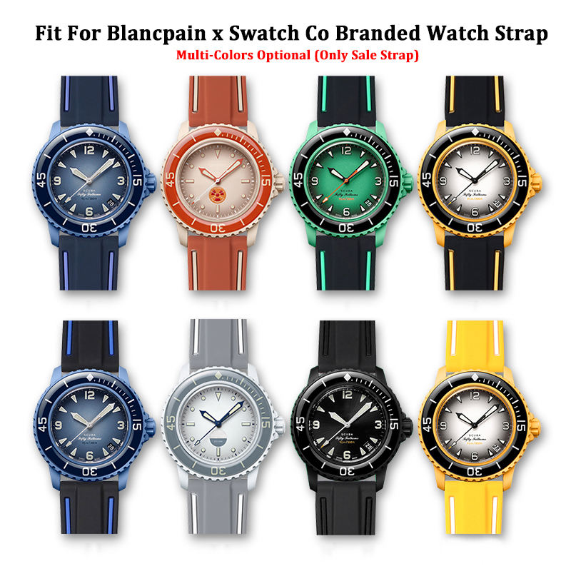 สายนาฬิกาซิลิโคนสองสีสำหรับ SWATCH x Blancpain นาฬิกายาง22มม. สำหรับห้าสิบชุดห้ามหาสมุทร