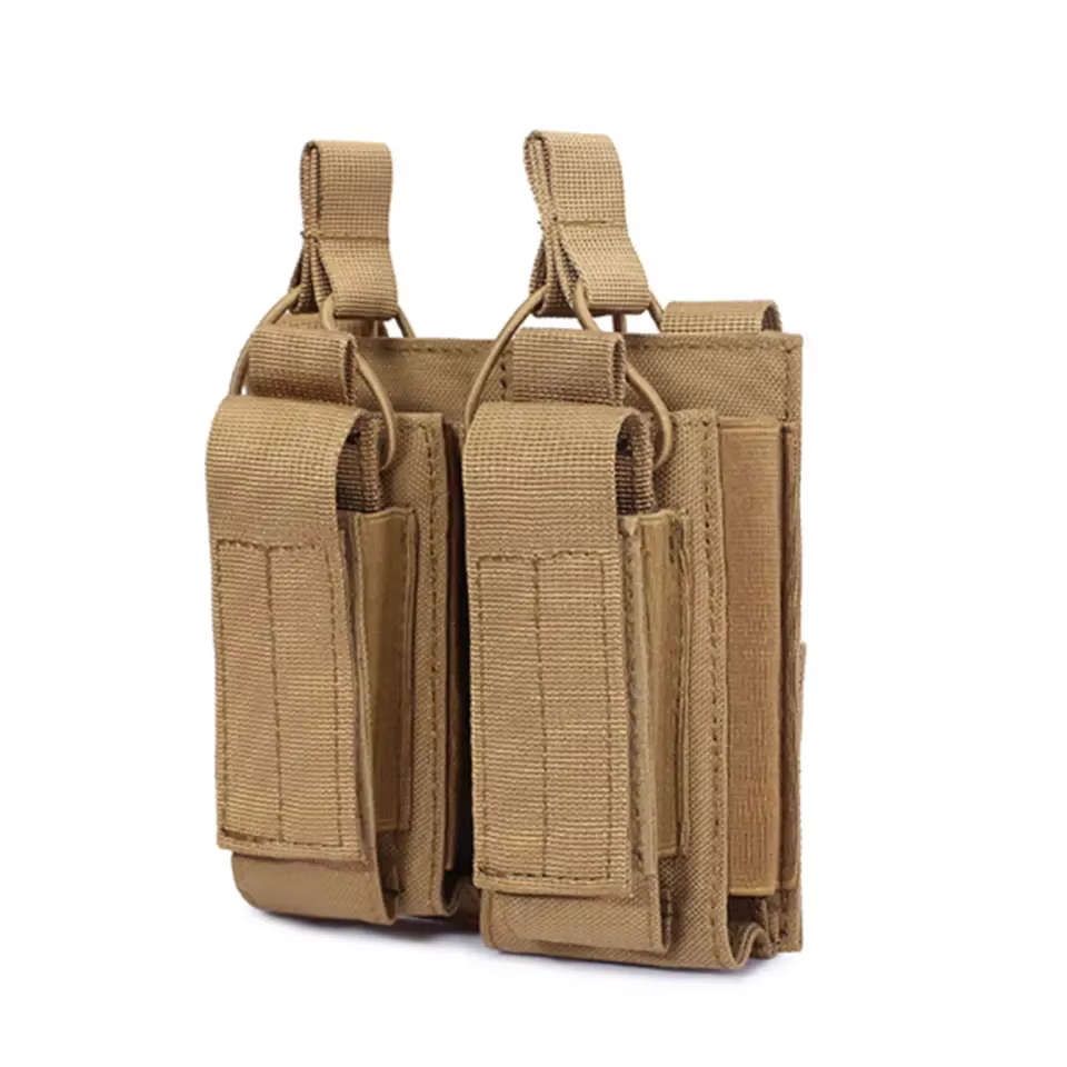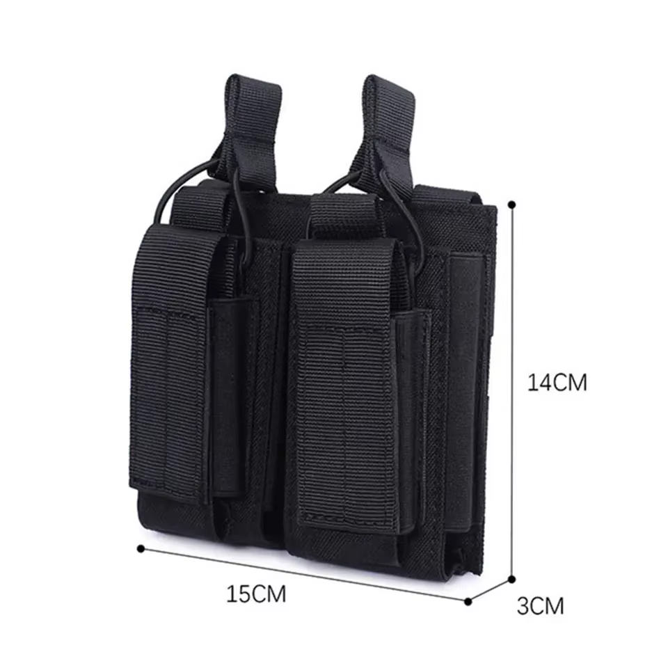 กระเป๋าเก็บของโพลีเอสเตอร์ยุทธวิธีแบบมีช่องใส่ปืนพกกลางแจ้งมีช่องแขวนเสื้อกั๊กอุปกรณ์เสริมแมกกาซีนแบบสองช่อง