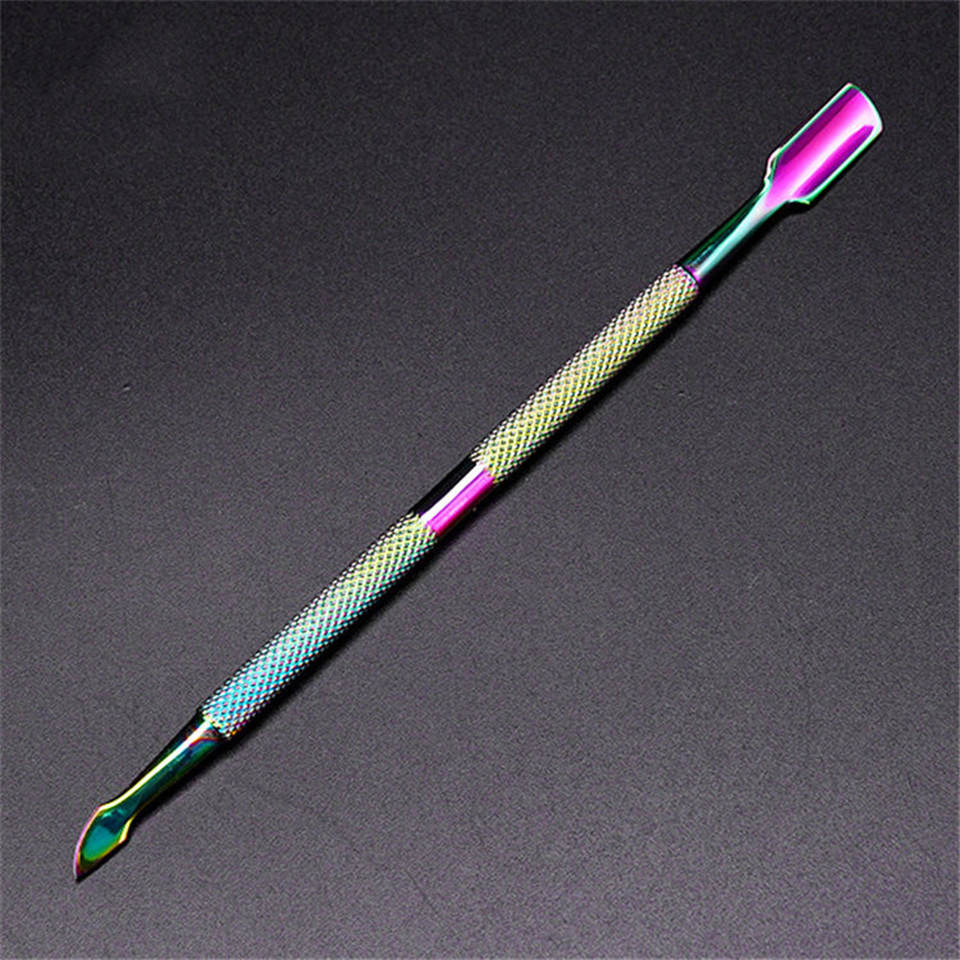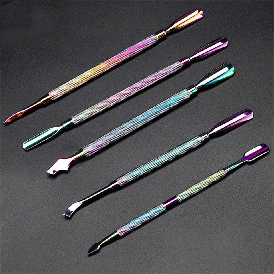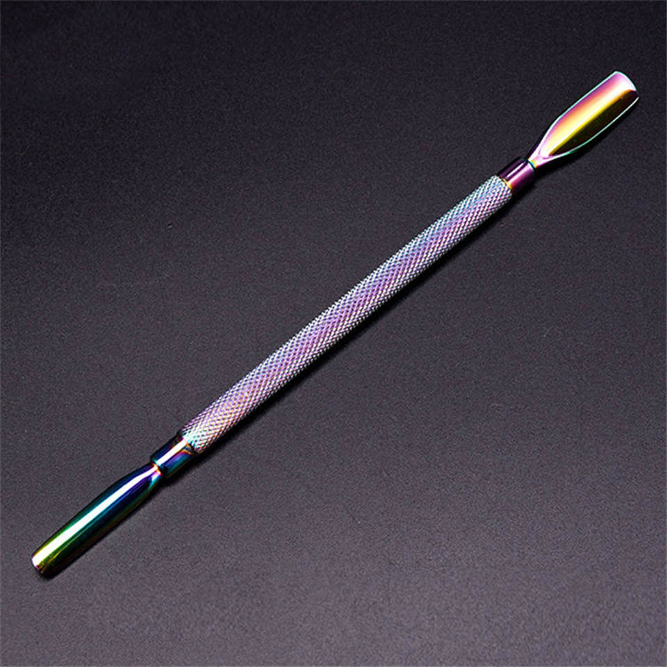 ที่ดันหนังกำพร้าสแตนเลสสีรุ้งแบบสองด้าน ด้ามจับกันลื่น สำหรับทำเล็บมือและเล็บเท้า