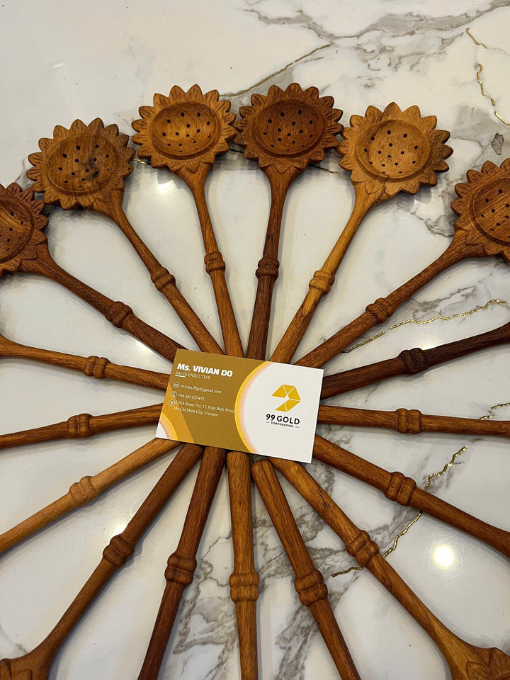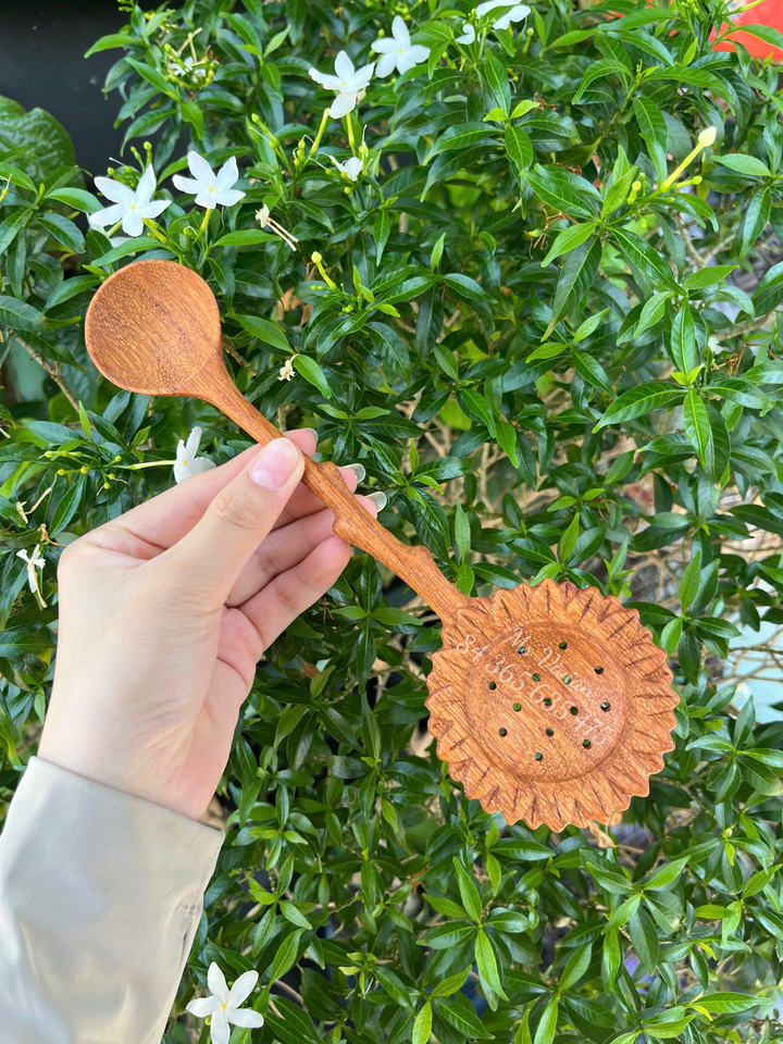 ช้อนกาแฟไม้สองด้าน 2 in 1 ช้อนไม้กรองชา ทำด้วยมือจากไม้ธรรมชาติ เวียดนาม ช้อนไม้ลายดอกทานตะวัน ราคาถูก 2026