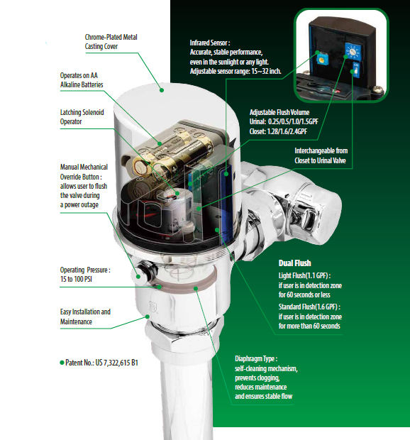 1.28ปรับได้/1.6 / 2.4 gpf (ตู้เสื้อผ้า)