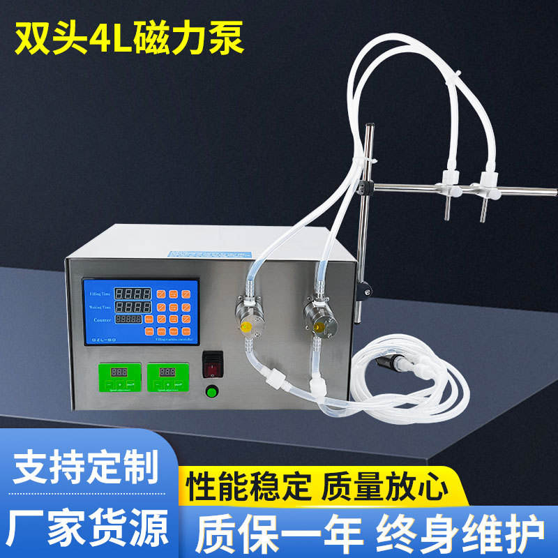 เครื่องบรรจุของเหลวด้วยปั๊มแม่เหล็กแบบหัวคู่ 220V กึ่งอัตโนมัติ ความแม่นยำสูง สำหรับขวดโยเกิร์ตและของเหลว