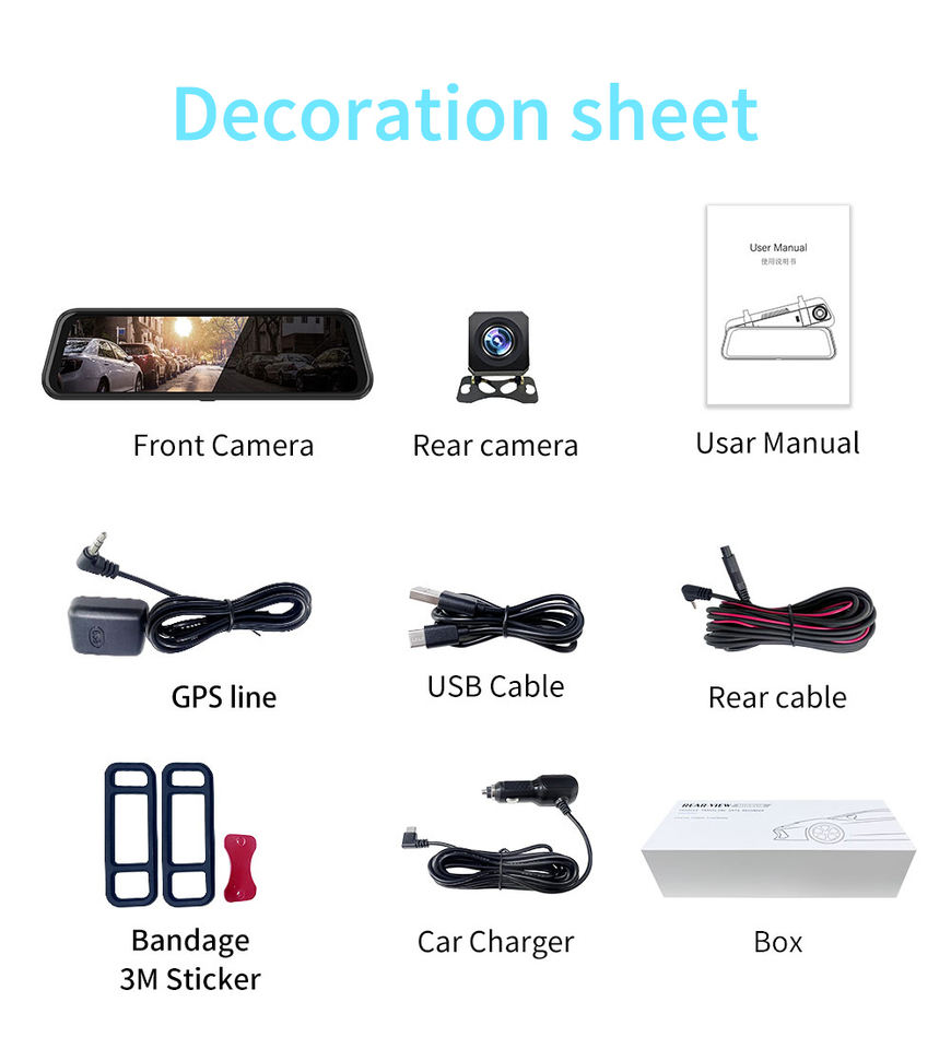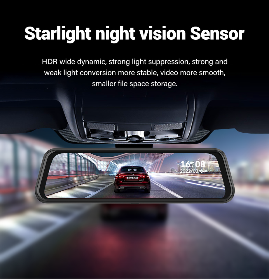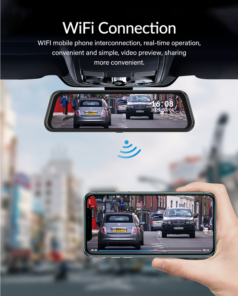 กล้องติดรถยนต์แบบกระจกมองหลัง ความละเอียด Full HD เลนส์คู่ บันทึกวิดีโอ บันทึกเหตุฉุกเฉิน ตรวจจับความเคลื่อนไหว GPS WiFi มองเห็นในเวลากลางคืน หน่วยความจำ 64G ระบบสัมผัส