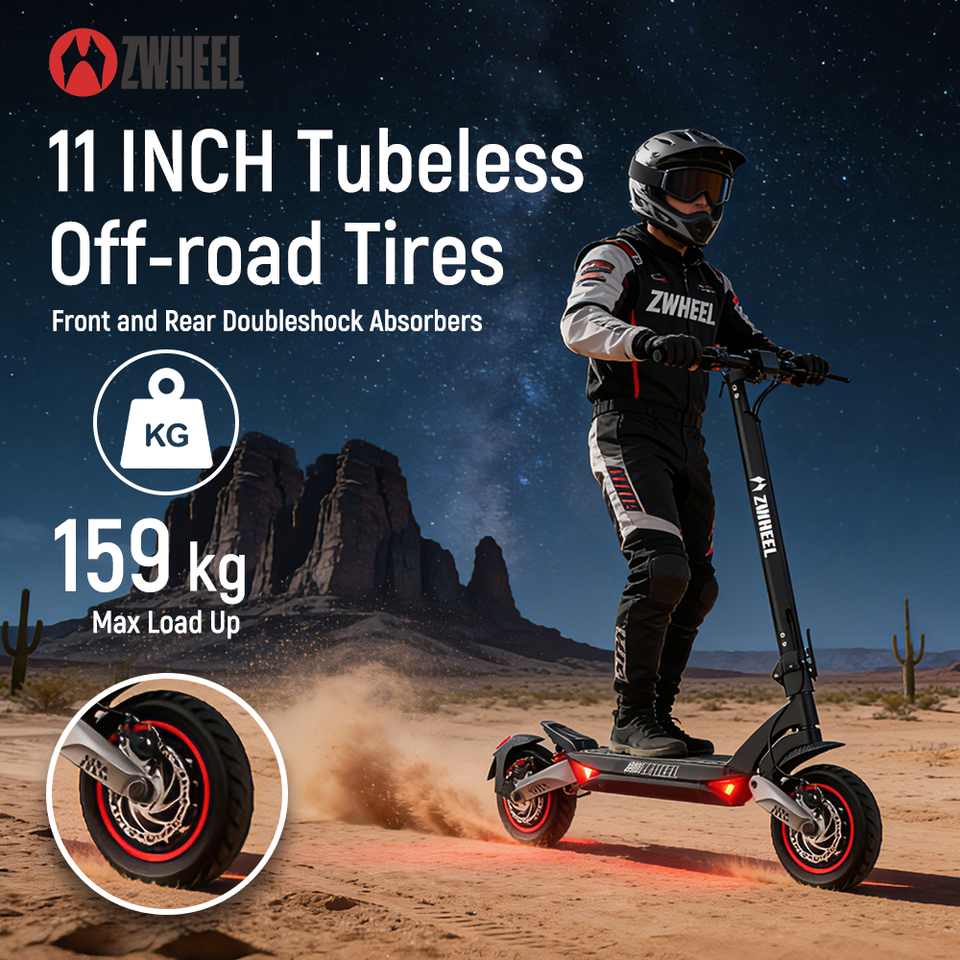 สกู๊ตเตอร์ไฟฟ้ามอเตอร์คู่ 2000W2 พร้อมยางสำหรับทุกสภาพพื้นผิว ควบคุมผ่านแอปพลิเคชัน ระยะทาง 60 กม. สำหรับการผจญภัยนอกถนน