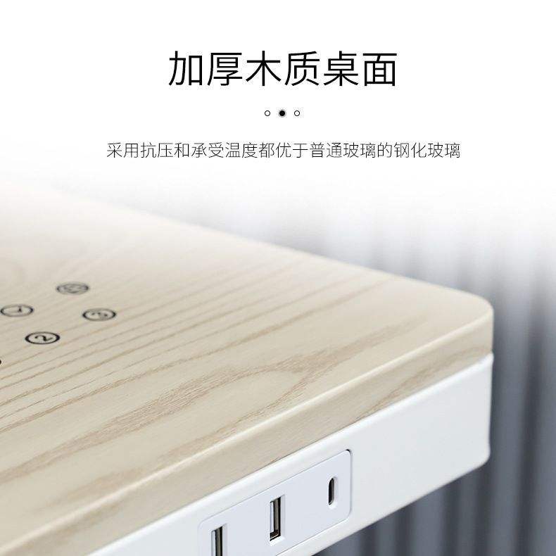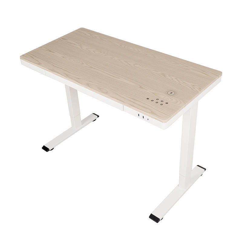โต๊ะทำงานปรับระดับความสูงด้วยมอเตอร์คู่ หน้าโต๊ะไม้โอ๊คสีขาว โต๊ะสำนักงานอัจฉริยะ ดีไซน์ร่วมสมัย รูปลักษณ์ทันสมัย
