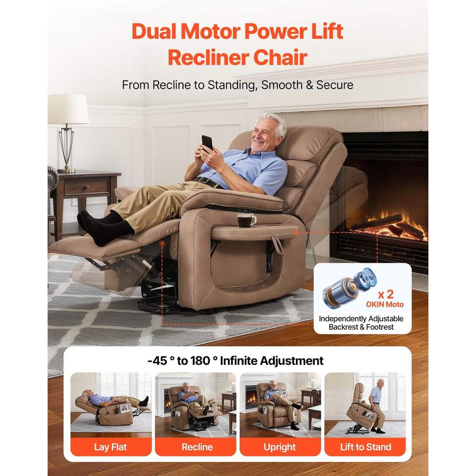 เก้าอี้ปรับเอนไฟฟ้าแบบยกตัวได้ พร้อมมอเตอร์คู่ ระบบทำความร้อน นวดผ่อนคลาย ปรับตำแหน่งได้ไม่จำกัด ขนาดกลาง-กว้าง สำหรับผู้สูงอายุ