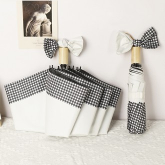 Dual Purpose Clear Rain and UV Protection Windproof Ins 30% Check Simple Umbrella with Durable Faux Wood Handle