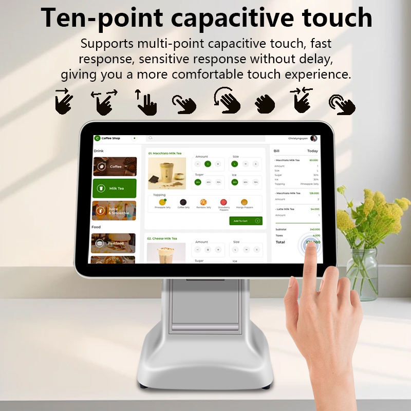 เครื่อง POS ออลอินวันหน้าจอคู่ขนาด 15/15.6 นิ้ว รองรับหลายระบบปฏิบัติการ พร้อมระบบสมาร์ท WIFI และเครื่องบันทึกเงินสด รับประกัน 1 ปี เหมาะสำหรับร้านขายเสื้อผ้า