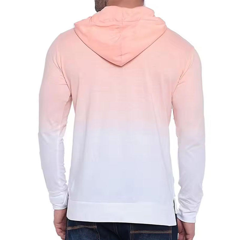 เสื้อฮู้ดแขนยาวผ้าฟลีซผ้าฝ้าย100% สีไล่ระดับน้ำหนักเบาพร้อมฮู้ดเชือกรูดแฟชั่นสตรีทแวร์ของผู้ชาย