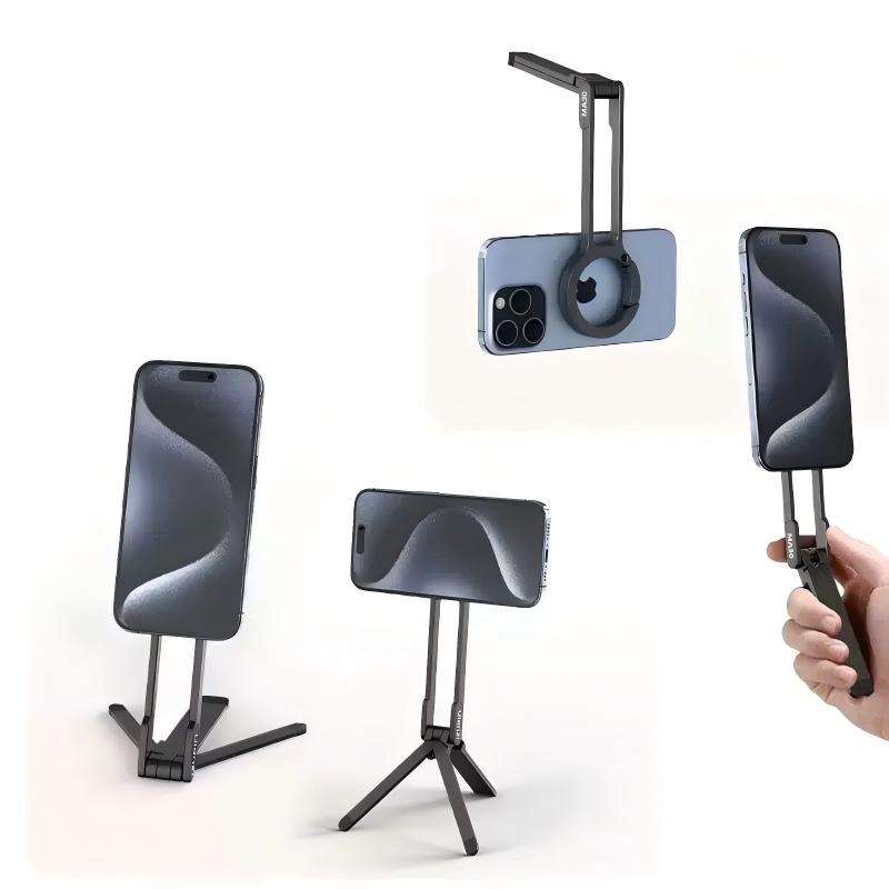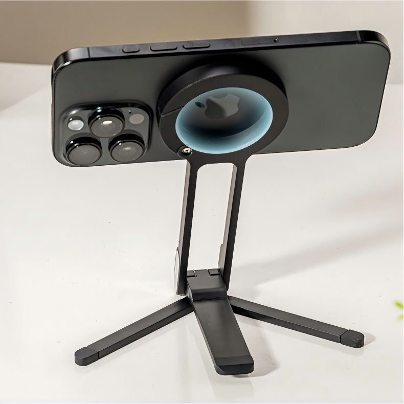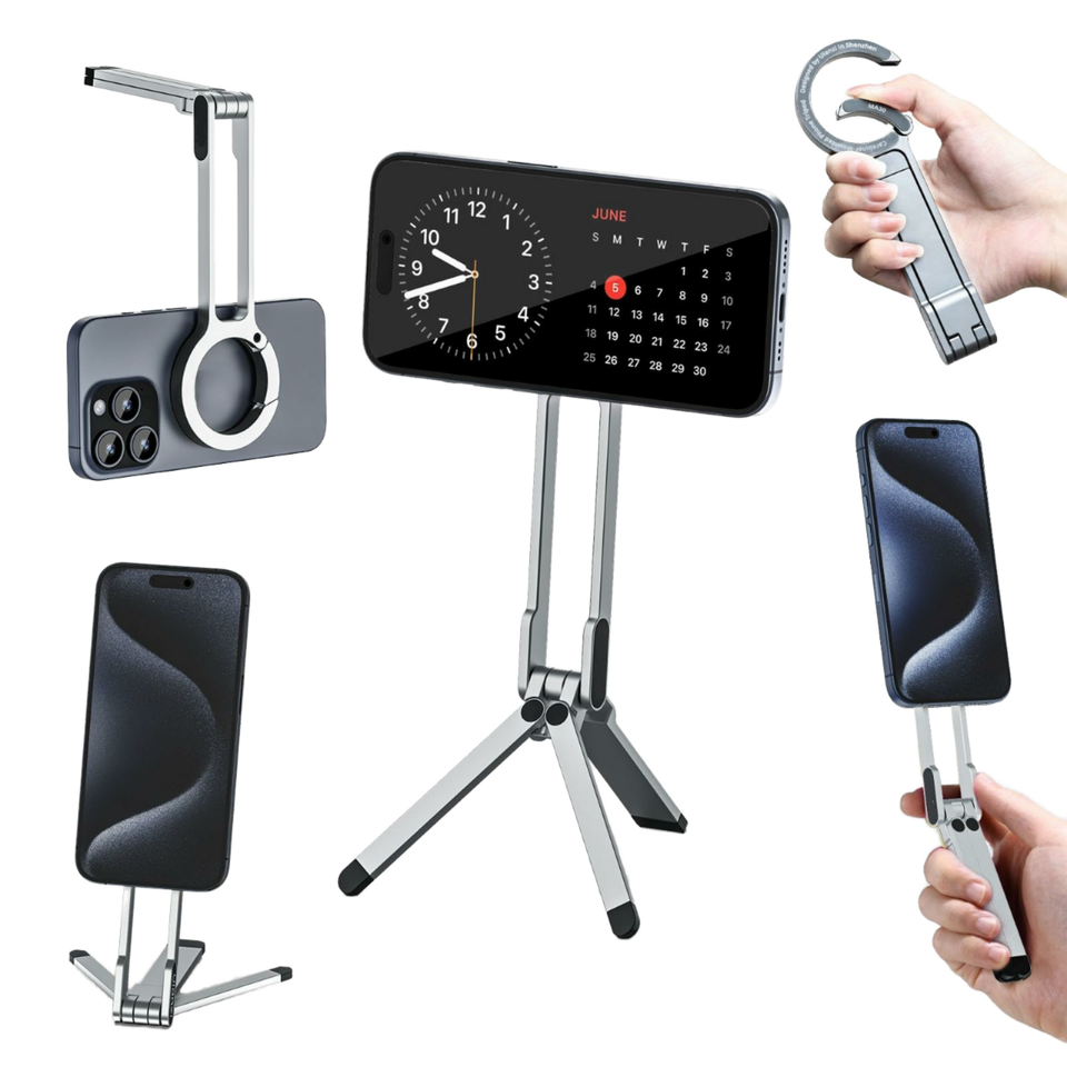 ขาตั้งโทรศัพท์แบบพกพาแม่เหล็กอะลูมิเนียมสองด้าน ใช้ได้กับสมาร์ทโฟนขนาด 12-16 นิ้ว สำหรับตั้งโต๊ะ