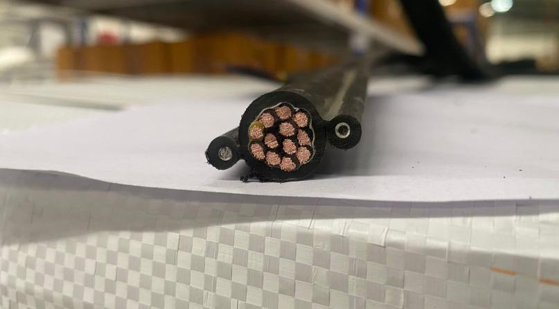 สายควบคุมเครนแบบยืดหยุ่นชนิดมีตัวลดแรงดึงคู่ ตัวนำทองแดงปลอดออกซิเจน 300/500V สำหรับงานหนัก ปลอกหุ้มสีดำ 125 แอมป์