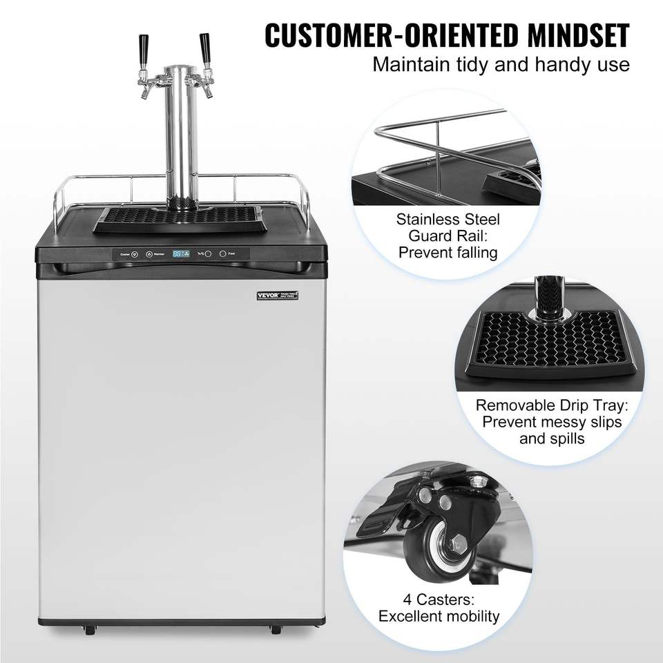 Dual Tap Full Size Keg Refrigerator Beer Kegerator Draft Dispenser
