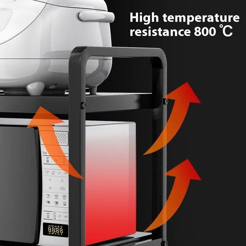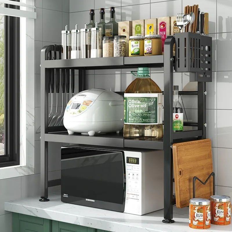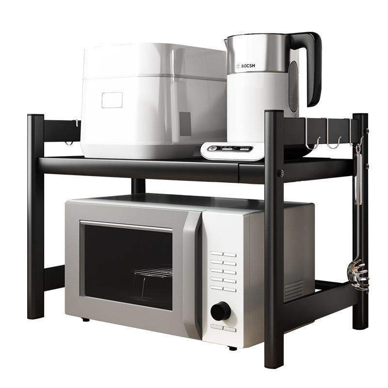 ชั้นเก็บของบนโต๊ะแบบพับเก็บได้สองชั้นชั้นชั้นเหล็กหนาหม้อหุงข้าวไฟฟ้าเตาอบที่วางไมโครเวฟสำหรับห้องครัวครัวเรือน