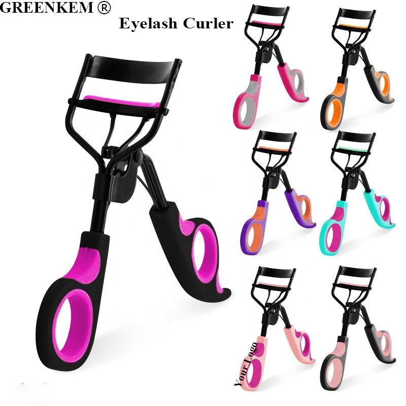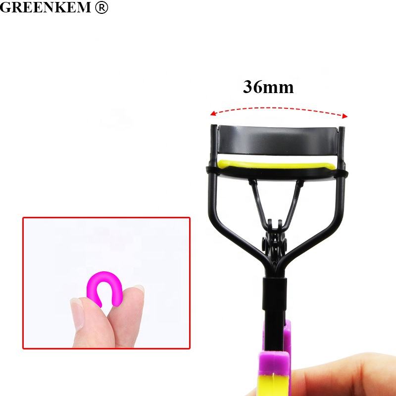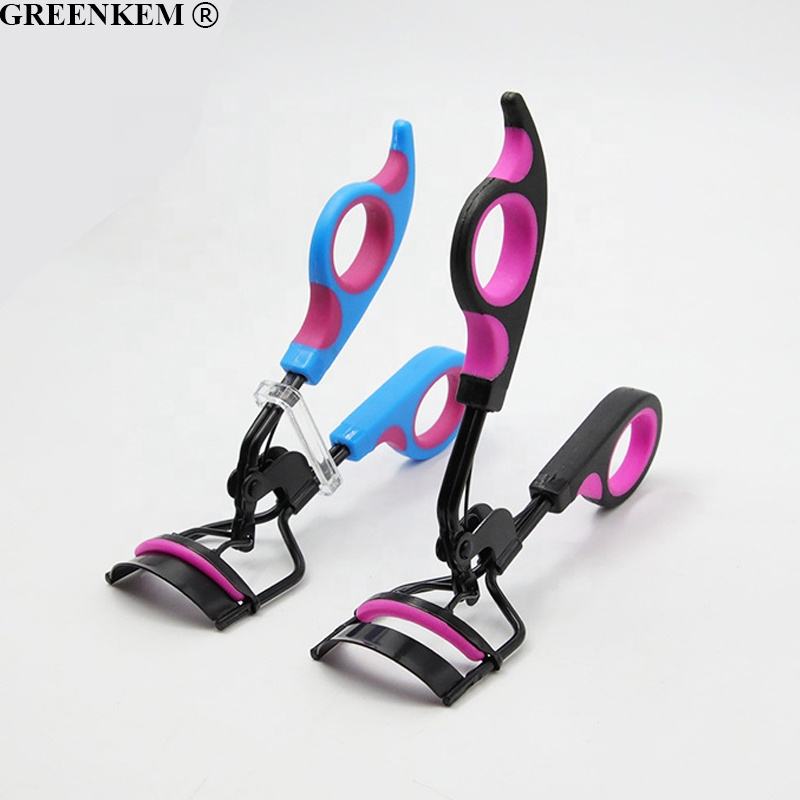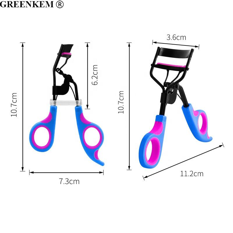 ที่ดัดขนตาแบบพกพาทำจากเหล็กคาร์บอนแบบสองสีด้ามด้ามด้ามซิลิโคนมีหลายสีให้เลือก