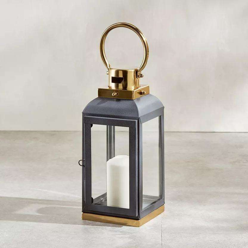 โคมไฟโลหะสีเทาและสีทองแบบสองสี สำหรับตกแต่งบ้านและสวน โคมไฟตั้งพื้นสำหรับรอมฎอน คริสต์มาส พร้อมที่ใส่ขวดไม้