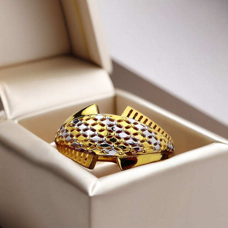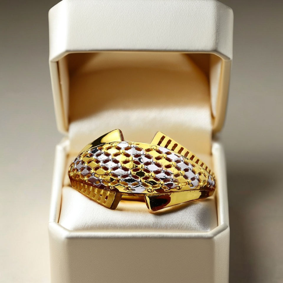 แหวนทองลายตารางแบบสองสี | ลายรังผึ้งสำหรับผู้หญิง | แหวนสเตทเมนท์สุดเก๋ น้ำหนัก 2.750 กรัม